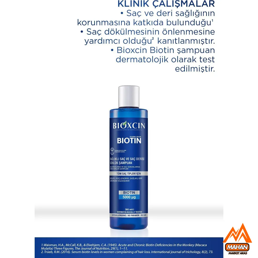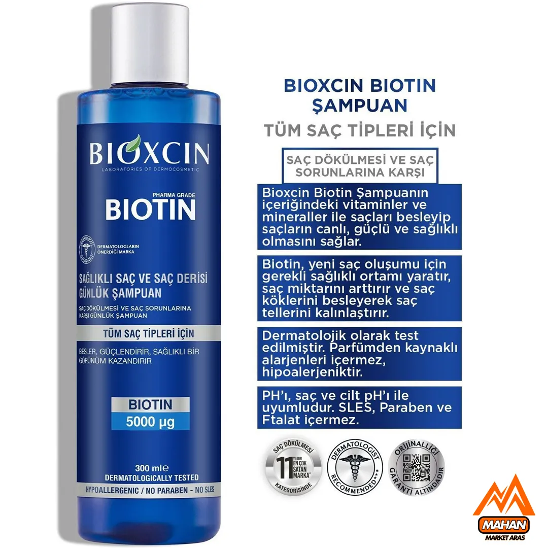شامپو ضد ریزش مو ویتامینه بیوتین بیوکسین مناسب انواع مو تا حساس حجم 300 میل محصولی ایده‌آل برای افرادی است که به دنبال راه‌حلی مؤثر برای کاهش ریزش مو، تقویت ریشه‌ها و داشتن موهایی پرپشت و درخشان هستند. این شامپو با فرمولاسیون پیشرفته، ترکیبات فعال مانند بیوتین خالص، بیوکمپلکس B11، ویتامین‌های گروه B و مواد معدنی، نتایج قابل‌توجهی در کاهش ریزش مو (تا 86%)، ضخیم شدن تارهای مو (83%) و افزایش استحکام مو (93%) ارائه می‌دهد. برند بیوکسین با بیش از 15 سال تجربه و تأییدیه‌های بالینی، محصولی باکیفیت و قابل‌اعتماد ارائه کرده که در فروشگاه‌ ماهان مارکت ارس در دسترس است.