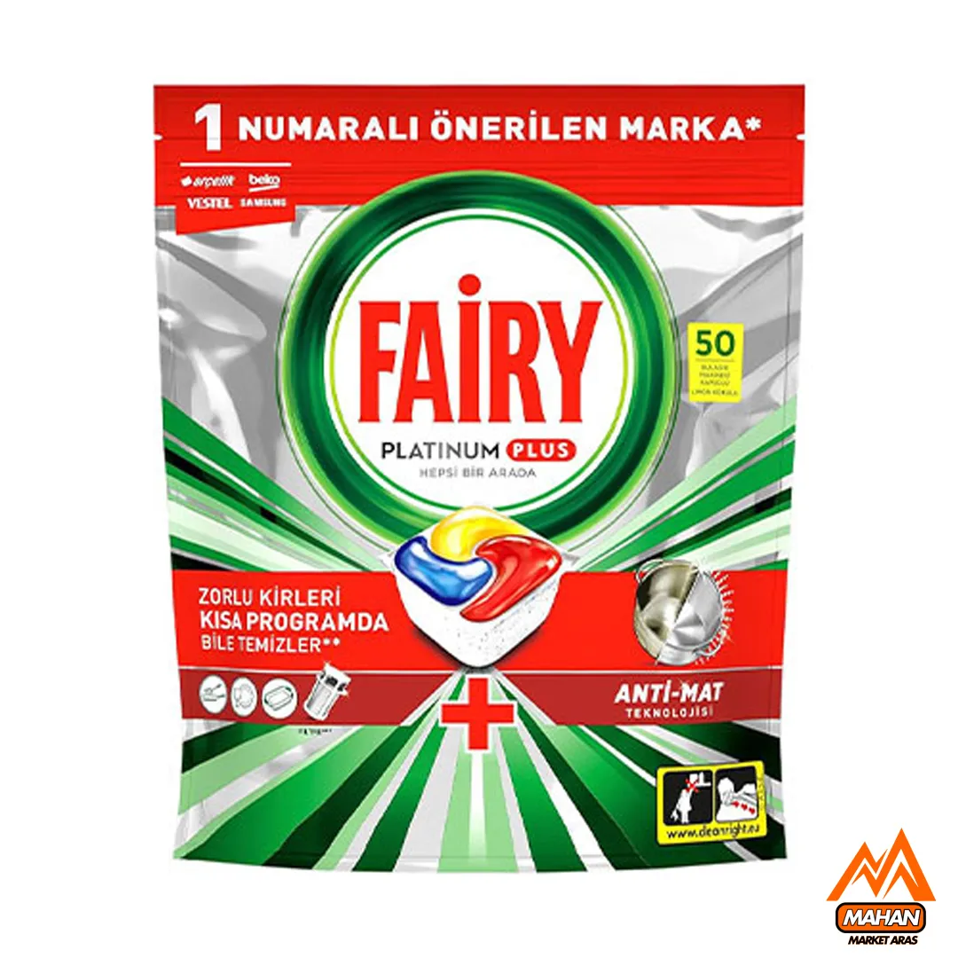 قرص ماشين ظرفشويی پلاتينيوم پلاس لیمویی 50 عددی فيری FAIRY مدل Fairy Platinum Plus All In One Dishwasher Tablets Lemon 59 Tablets